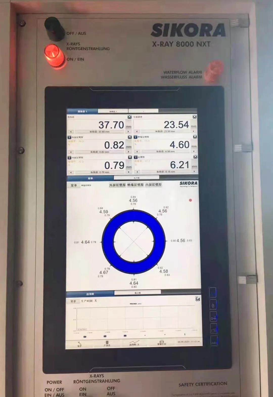 “嚴(yán)把質(zhì)量關(guān),產(chǎn)品質(zhì)量有保證?!惫具€大力引進(jìn)德國(guó)進(jìn)口西科拉交聯(lián)管內(nèi)電纜偏心壁厚分層辨析系統(tǒng),在每一個(gè)掃描器上配備新一代的雙接收器的測(cè)偏儀,保證儀器在任何激烈電纜抖動(dòng)情況下也能進(jìn)行精確可靠的檢測(cè),并采用全新的門(mén)控技術(shù)控制X射線的發(fā)射,X射線的轉(zhuǎn)換效率更高,操作溫度更低,從而保護(hù)射線管,生產(chǎn)過(guò)程實(shí)時(shí)監(jiān)控中壓電纜內(nèi)屏,絕緣,外屏三層擠出時(shí)采集八點(diǎn)厚度,精準(zhǔn)實(shí)時(shí)監(jiān)控絕緣外徑,從而提供高標(biāo)準(zhǔn)產(chǎn)品。