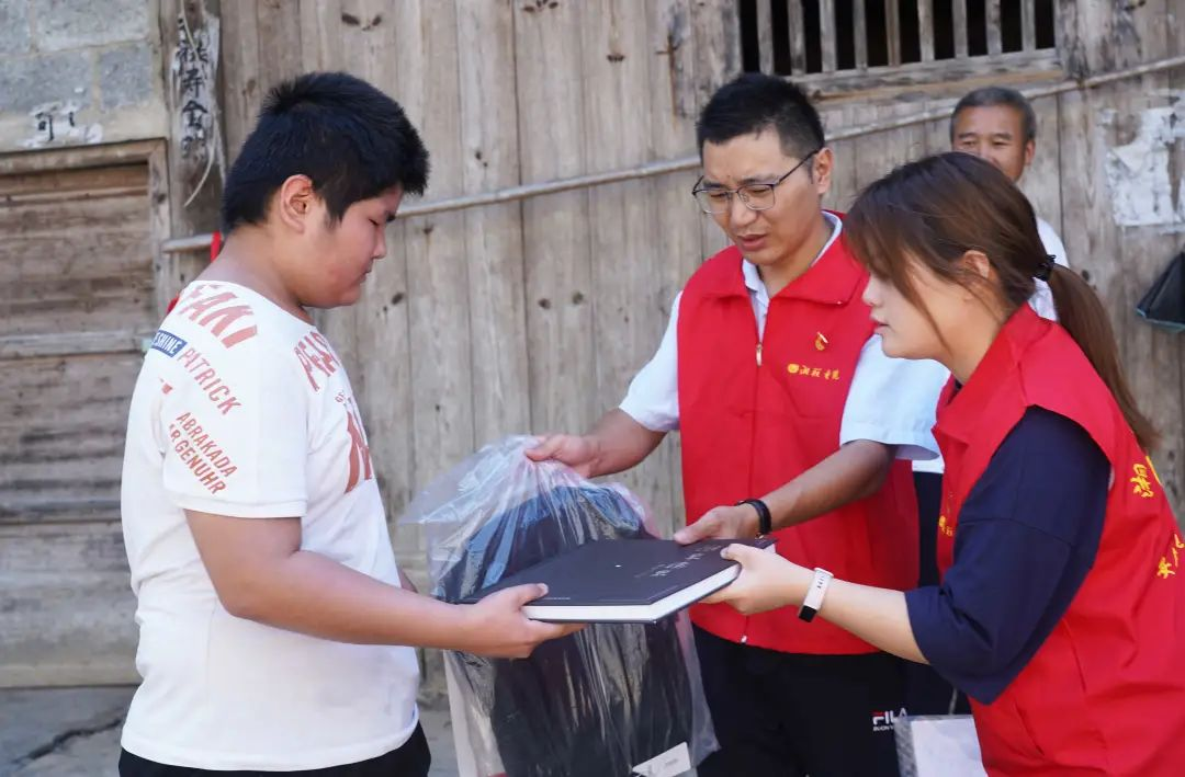 ▲湘聯(lián)電纜“芯”光助學(xué)基金會(huì)為孩子們送上愛(ài)心基金和學(xué)習(xí)用品