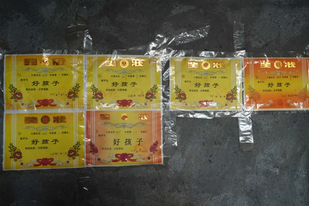▲被資助孩子在學(xué)校表現(xiàn)優(yōu)異,獎(jiǎng)狀貼滿墻