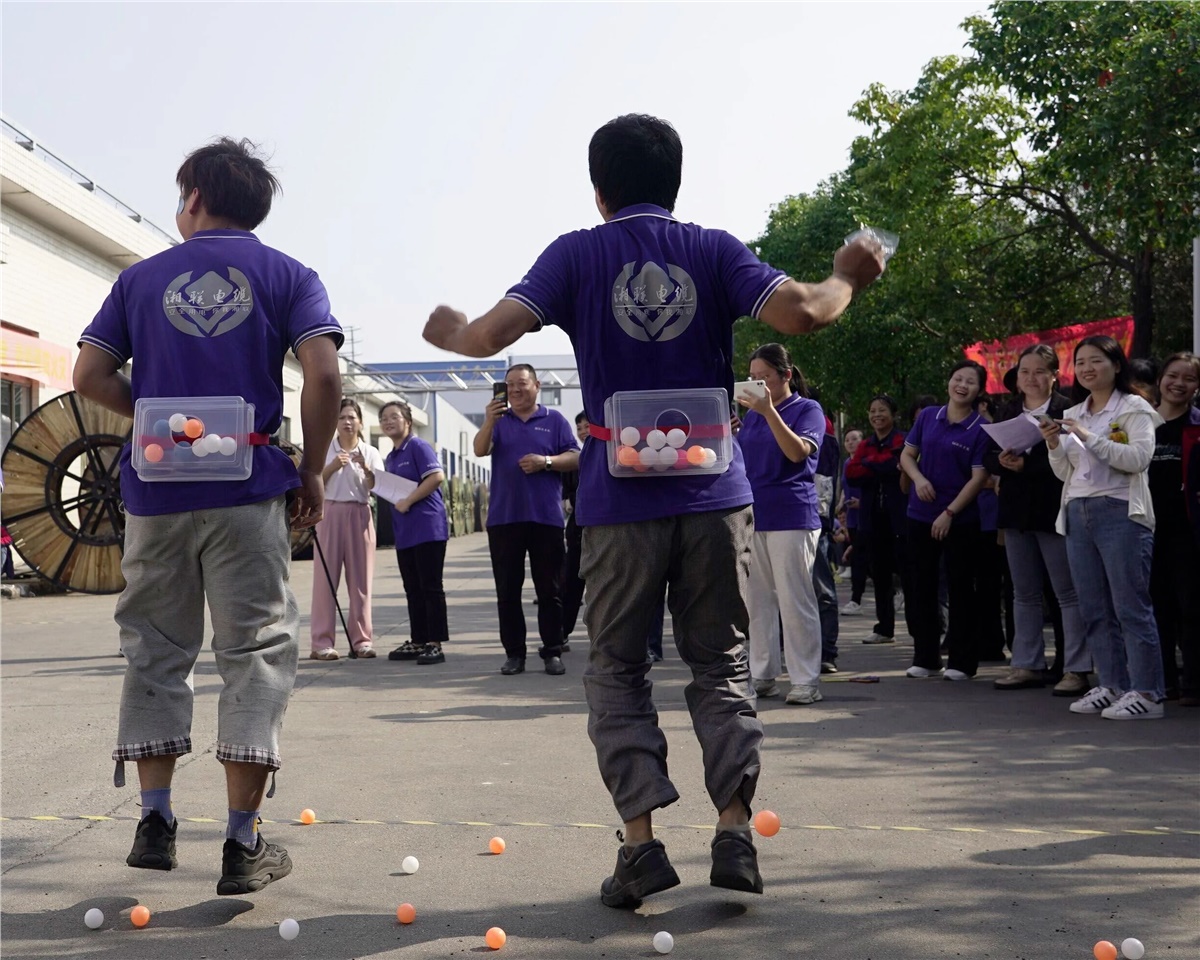 本屆運(yùn)動會融合個人競技和團(tuán)體競爭,設(shè)有無敵風(fēng)火輪、摸石頭過河、投壺、公雞下蛋四個項目,運(yùn)動形式活潑多樣,且兼顧技巧性,既能讓大家感受到運(yùn)動的趣味性,又能增強(qiáng)大家的團(tuán)隊協(xié)作精神。在運(yùn)動場上,運(yùn)動員們奮力拼搏,比技巧和默契,拼速度和協(xié)作,啦啦隊員們吶喊、歡呼,喝彩與掌聲此起彼伏,充分展現(xiàn)出湘聯(lián)電纜積極向上、朝氣蓬勃的風(fēng)采。