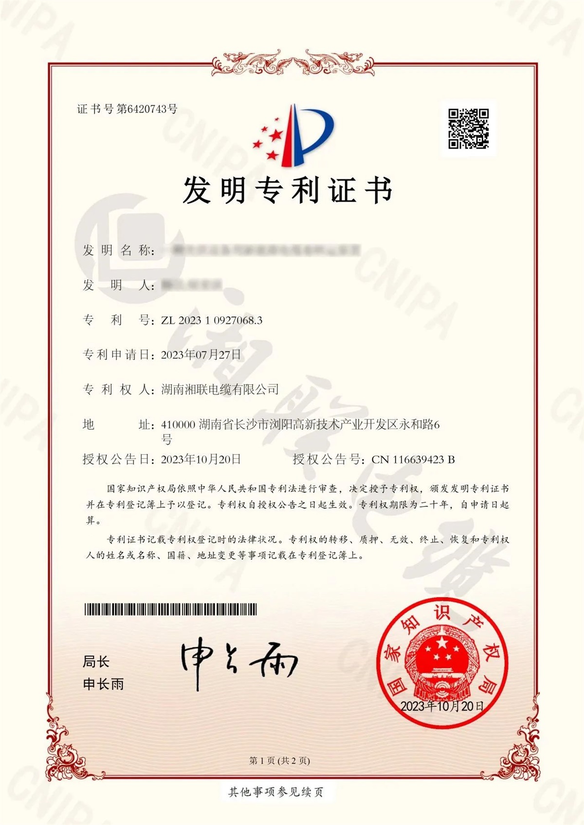 近期,經(jīng)國家知識產(chǎn)權局審核批準,湘聯(lián)電纜再次獲得4項發(fā)明專利和2項實用新型專利授權,本次專利的申報類別廣泛,涉及電線電纜的保護、檢測、防爆等技術應用,對線纜的精益生產(chǎn)制造具有重要作用。
