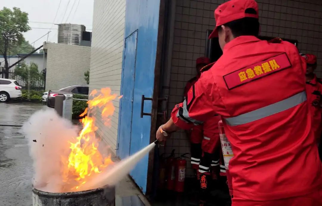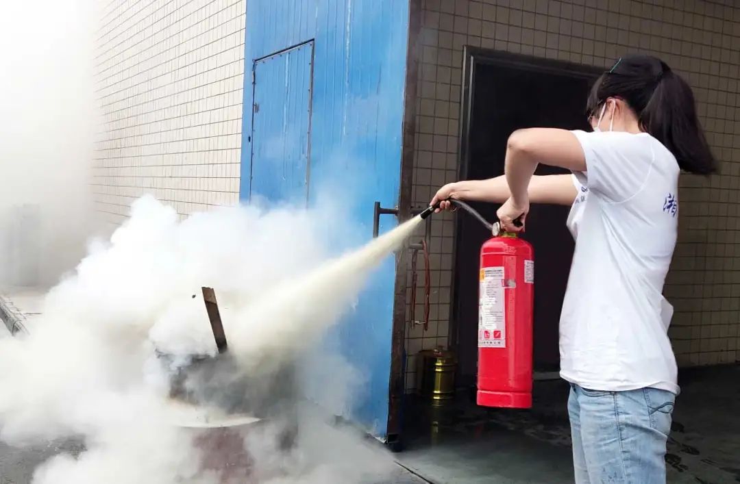 ▲員工正在進(jìn)行滅火器實操演練