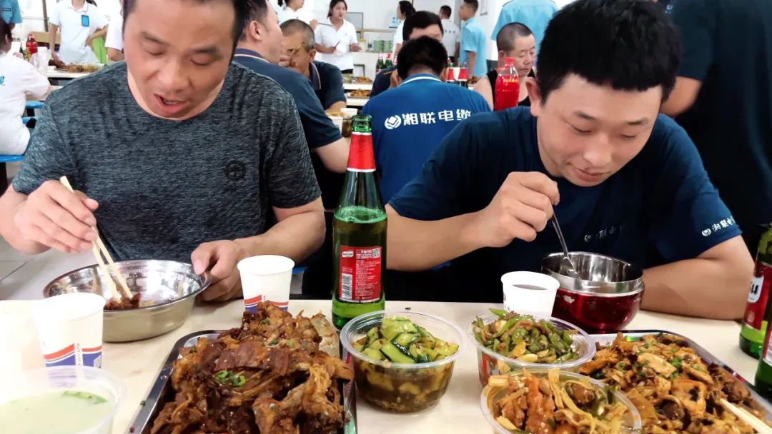 在員工餐廳,大家齊聚一堂,圍桌而坐,時(shí)而三倆交流,時(shí)而舉杯慶祝,時(shí)而專(zhuān)注美食,到處洋溢著一種歡樂(lè)的氛圍。肉質(zhì)鮮美的羊肉、營(yíng)養(yǎng)豐富的羊雜湯、精致可口的小菜、清爽新鮮的水果、清涼的飲品讓大家的幸福感油然而生。