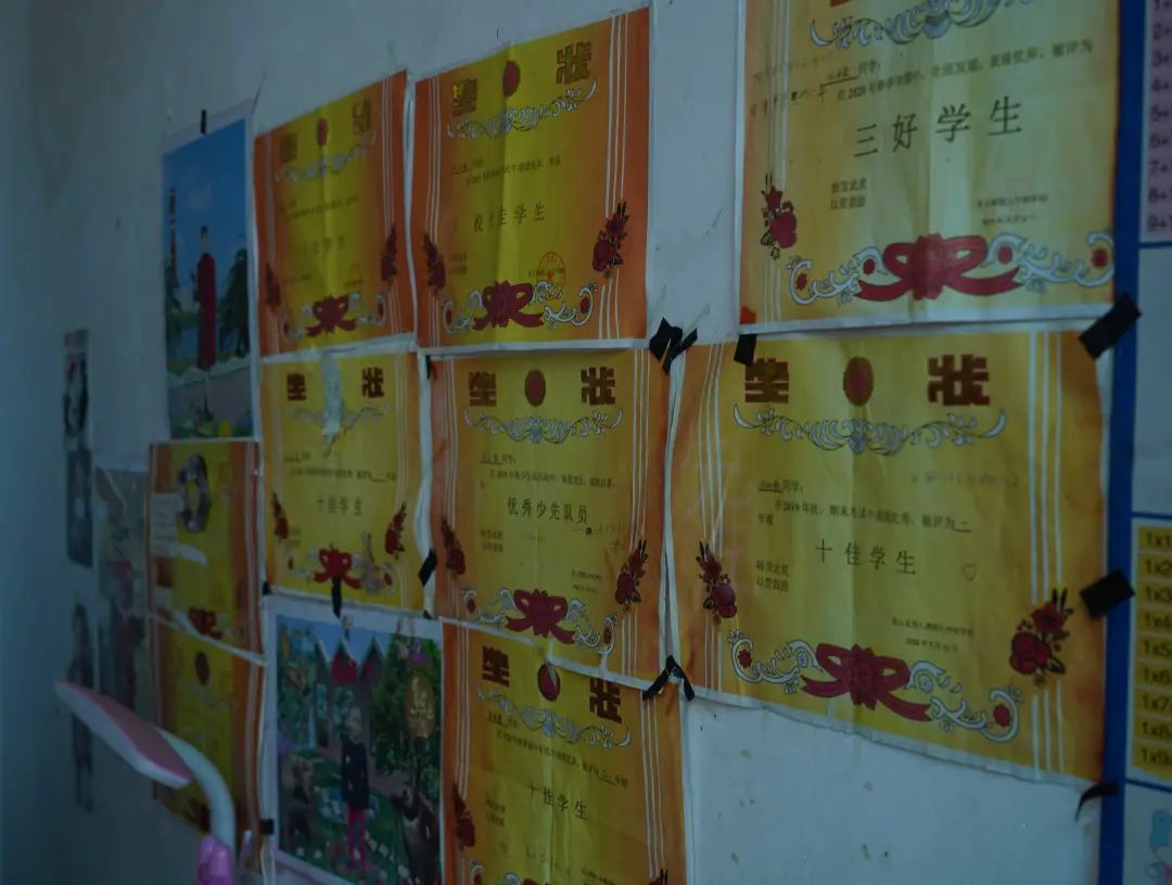 ▲被資助孩子在學(xué)校表現(xiàn)優(yōu)異,獎(jiǎng)狀貼滿墻