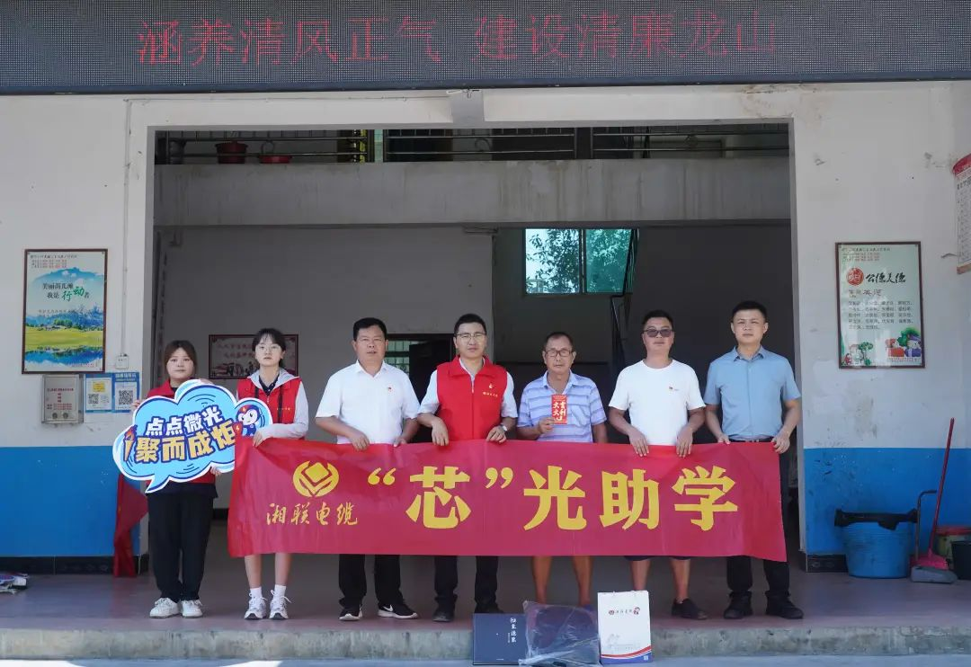 ▲湘聯(lián)電纜“芯”光助學(xué)基金會(huì)為孩子們送上愛(ài)心基金和學(xué)習(xí)用品