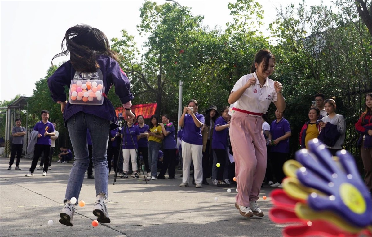 本屆運(yùn)動會融合個人競技和團(tuán)體競爭,設(shè)有無敵風(fēng)火輪、摸石頭過河、投壺、公雞下蛋四個項目,運(yùn)動形式活潑多樣,且兼顧技巧性,既能讓大家感受到運(yùn)動的趣味性,又能增強(qiáng)大家的團(tuán)隊協(xié)作精神。在運(yùn)動場上,運(yùn)動員們奮力拼搏,比技巧和默契,拼速度和協(xié)作,啦啦隊員們吶喊、歡呼,喝彩與掌聲此起彼伏,充分展現(xiàn)出湘聯(lián)電纜積極向上、朝氣蓬勃的風(fēng)采。