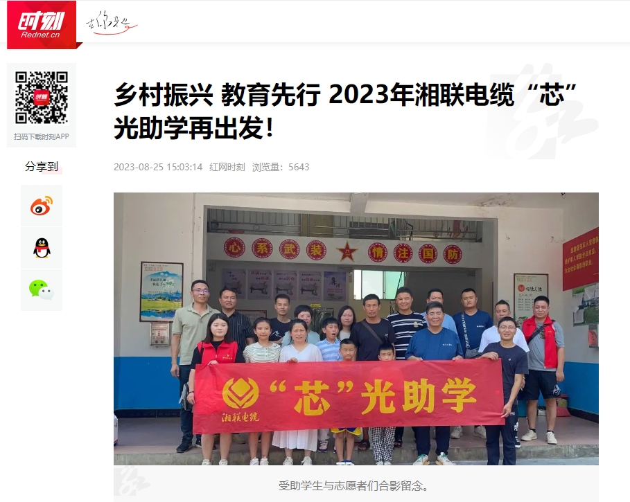 2023年,為增強(qiáng)員工的思想道德建設(shè),湘聯(lián)電纜有序開展公益助學(xué)、懷念袁隆平院士、關(guān)愛老人等活動,多次被瀟湘晨報(bào)、湖北新聞、紅網(wǎng)、澎湃新聞等知名媒體推薦報(bào)道。